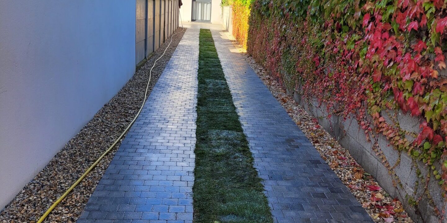 Réalisation d’une allée en pavés avec pose de gazon en rouleau AVANT APRES Navigation de commentairePrécédent Onglet précédent OSEZ LES COULEURSSuivantProjets similairesCUISINES